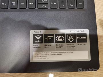 HARDWARE: Intel i7 di 8° generazione – 8 GB RAM – SSD M2 500 GB – Scheda video GE FORCE MX 230 2GB – Schermo 15,6 pollici FULL HD