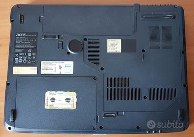 Notebook ACER ASPIRE 7720G funzionante, schermo 17 pollici con qualche macchia bianca, processore Intel Core Duo T5250 1,50 GHz Dual Core, HDD 320 GB, RAM 4 GB, scheda video dedicata nVidia GeForce 8400M G 128 MB dedicati, sistema operativo Windows 11 24H2 home con licenza originale, batteria presente con autonomia di circa 5 minuti, carica batteria presente, segni di usura visibili in foto.