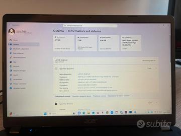 Notebook in perfetto stato e funzionante usato da mia figlia solo per la scuola. Presenta qualche leggero graffio sul coperchio superiore. Processore: AMD Ryzen 5 3500U con 4 core e 8 thread, frequenza base di 2,1 GHz e boost fino a 3,7 GHz. Memoria RAM: 8 GB DDR4-SDRAM, espandibile fino a un massimo di 16 GB. Archiviazione: SSD da 512 GB PCIe NVMe, che garantisce tempi di avvio e caricamento rapidi rispetto ai dischi rigidi tradizionali. Alcune varianti o unità rigenerate potrebbero presentare tagli differenti, come 240 GB. Display: Pannello da 15,6 pollici con risoluzione Full HD (1920 x 1080 pixel). Si tratta generalmente di un pannello di tipo TN. Grafica: Integrata AMD Radeon Vega 8, adatta per contenuti multimediali e gaming molto leggero. Esseshop Esseshop +9