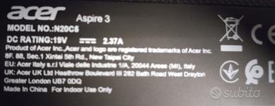 Pc 15.6 Acer Intel core i5. Aspire 3. 8, 00GB. Full HD 1080 Come nuovo. Vendo causa inutilizzo perché ereditato. In foto tutte le caratteristiche.