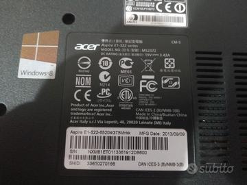 Notebook Acer non funzionante, ottimo per pezzi di ricambio. Hard disk e alimentatore assenti. Batteria già sostituita con una compatibile