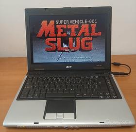 Notebook marca acer da 15.6 pollici in ottimo stato,sistema operativo windows,processore amd,ram 4 giga,hard disk nuovo,wify incorporato,pacchetto office,masterizzatore dvd,3 porte usb,la batteria stando sempre attaccata alla corrente si è rovinata (originale costa 15 euro,non originale costa 10 euro) ,completo di caricabatterie,nel notebook sono stati installati anche diversi emulatori e giochi degli anni 80,90,2000 con piu di 500 giochi. Il notebook si può vedere e provare. Il notebook è stato tenuto maniacalmente,perfetto in tutto.