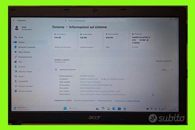 Vendo notebook Acer TravelMate 5742, perfettamente funzionante e pronto all’utilizzo, ideale per navigazione, studio, lavoro d’ufficio e utilizzo quotidiano. Il dispositivo è stato aggiornato con SSD veloce da 256GB e 8GB di RAM, garantendo buone prestazioni rispetto alla configurazione originale. 🔧 Specifiche principali: •Processore: Intel Core i3 M380 •Archiviazione: SSD 256GB Kingston •RAM: 8GB (2 moduli da 4GB) •Grafica: Intel HD Graphics integrata •Schermo: 15,6 pollici HD (1366x768) •Sistema operativo: Windows 11 installato e configurato •Batteria: presente ma da sostituire (funziona solo collegato alla corrente) 📦 Fornito con caricatore originale. 💡 Condizioni generali: Notebook usato, in buono stato estetico e perfettamente funzionante. Ideale come secondo PC o per utilizzo domestico. 📌 Condizioni di vendita: 1.Trattativa tra privati: l’oggetto viene ceduto nello stato attuale, senza garanzia post-vendita. 2.Non è prevista emissione di fattura o ricevuta, come da normativa sulle vendite tra privati. 3.Pagamenti accettati: bonifico bancario, PayPal oppure servizio Tuttosubito. 4.Possibilità di consegna a mano previo accordo. 5.Spedizione disponibile con costi a carico dell’acquirente, imballo accurato. 6.Per acquisti combinati o richieste particolari, contattatemi prima per definire spedizione e dettagli.