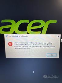 Si accende perfettamente ma l’installazione di Windows è da completare (compare errore, va reinstallato da chi ha una chiavetta USB).