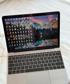 Notebook Apple MacBook 12 inch Space Grey con display Retina sbeccato ai lati, con doppio sistema operativo Mac e Windows funzionanti. Schermo rovinato come in foto, sfarfalla a seguito di una caduta e ha difetti estetici agli angoli del monitor. Software funzionante, ma schermo da sostituire. Funiona normalmente attraverso mirroring (duplicazione schermo). Info: Notebook da 12" con display Retina • Schermo retroilluminato LED panoramico lucido da 12" (diagonale) ad alta definizione, 2304 x 1440 pixel •Processore Intel Core M dual-core a 1,1 GHz con 4 MB di cache L3 (Turbo Boost fino a 2,4 GHz) • 8 GB di memoria SDRAM LPDDR3 a 1600 MHz integrata • Unità di memoria flash integrata da 256 GB • Intel HD Graphics 5300 • Porta USB tipo C • Porta cuffie; altoparlanti stereo • Wi-Fi 802.11ac e Bluetooth 4.0 • Videocamera FaceTime • Tastiera retroilluminata e sensore di luminosità ambientale • OS X preinstallato •Dimensioni e peso: 0,36-1,3 × 28,05 x 19,65 cm; 0,92 kg* •Conformità agli standard ENERGY STAR Vendo per pezzi si ricambio o uso con mirroring. Con cavo di ricarica senza adattatore. Confezione originale.