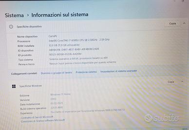 Portatile in ottime condizioni, veloce in accensione e spegnimento, montati 12 giga di RAM, vedo per passaggio a un pc diverso. Requisiti di sistema presenti in foto. Windows 11 gia installato. Eventuale spedizione a carico.