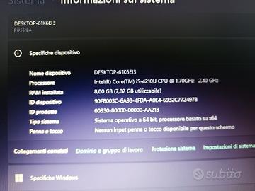 vendo notebook Asus con schermo da 15,4 pollici RAM 8 GB 256 memoria SSD in ottime condizioni alimentatore incluso