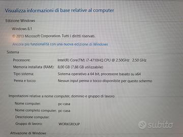 Vendo Notebook Asus serie N551JM-CN028H: -Cpu i7-4710HQ, -Hdd750Gb, -Ram 8Gb, -Scheda video integrata intel graphics 4600, -Scheda video dedicata Nvidia GTX 860, -DVD, lettore schede SD, -Windows 8.1 aggiornabile Win 10 -Completo di caricabatteria, Mouse e Cassa acustica esterna Asus / Bang & Olufsen. Accetto pagamenti con paypal.