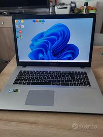 Vendo NOTEBOOK ASUS VIVOBOOK da 17,3 pollici, schermo FULL HD 1920x1080, colore grigio quarzo satinato, tastiera nera con sfondo grigio argento , tenuto ottimamente, processore Intel Core I7 8G a 4,00 Ghz, RAM 8 GB, SSD 256 GB per S.O e 512 GB ARCHIVIO MEMORIA, formattazione professionale e velocizzazione processi, sistema operativo Windows 11 Professional a 64 bit, aggiornato ad aprile 2026, ultimo aggiornamento Microsoft 25H2 piu stabilità sicurezza ed efficienza. Scheda video GEFORCE GTX molto performante fino a 6 GB in condivisione. Audio Stereo HARMAN CARDON Batteria buona Webcam ok, microfono ok! HDMI, Usb 3.0., Pacchetto Office 2024 professional (Word, Excel, Outlook, PowerPoint) Il PC è bello, con schermo molto ampio da 17,3 pollici in FULL HD, sottile slim ed è velocissimo grazie al processore Core I7 8G e soprattutto alla memoria elettronica SSD che da massime prestazioni, ed completo di tutti i programmi principali, Adobe, Chrome, CCleaner, ecc.. Traduttore, Sevenzip, Anydesk, YouTube, EDGE...OFFICE 2024 AdBlock contro la pubblicità. Prezzo 350,00 euro