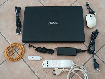 Notebook marca asus da 15.6 pollici in ottimo stato,nessun segno di usura,sistema operativo windows 11 professional a 64 bit (già ripristinato),processore intel,ram 4 giga ddr4,hard disk nuovo da 500 giga ad alta velovita,web cam frontale,wify incorporato,pacchetto office,masterizzatore dvd,3 porte usb,la batteria stando sempre attaccata alla corrente si è rovinata (originale costa 18 euro,non originale costa 12 euro) ,completo di caricabatterie originale asus,compreso nel notebook regalo un mouse seminuovo marca asus,una pennina per il collegamento ad internet con sim,un cavo di rete ethernet da 1.5 metri,un cavo hdmi,una prolunga da 1 a 3 ingressi,qualsiasi prova.