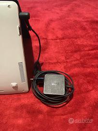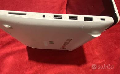 Notebook Asus F200M touchscreen, schermo 11.6 pollici, processore Intel Celeron, sistema operativo Windows 7 Ultimate, 2 GB RAM, 3 USB, 1 HDMI, 1 VGA, 1 jack audio, caricabatterie originale, batteria non funzionante.