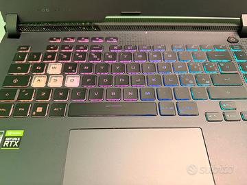 Potente notebook gaming ASUS ROG Strix G15 (modello G513RC) del 2022, ideale per gaming FPS, simulazioni, editing video e content creation. Configurazione alta con storage generoso e GPU RTX per ray tracing/DLSS.