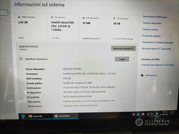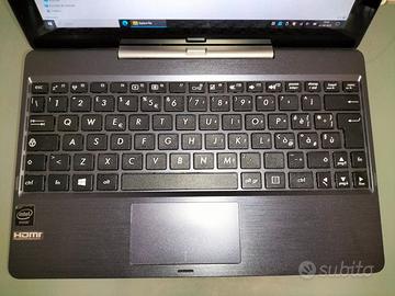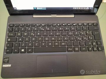 Vendo mini notebook Asus T100TAF Transformer, usato, con cpu intel Atom Z3735F, 2 GB di RAM e 32 GB di spazio, espandibile, per i programmi.
