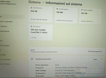 Vendo notebook asus vivobook , come nuovo, compreso di caricabatterie, il notebook ha il processore intel core i7 1255U di dodicesima generazione, 16 gb di ram. il notebook è equipaggiato con windows 11 home 64 bit originale. Ritiro a mano oppure spedizione a carico dell'acquirente.
