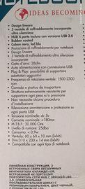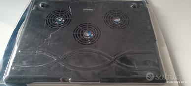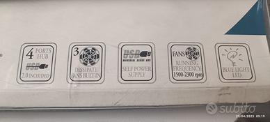 Notebook Cooling Station Fan'ny - SHINTEK- base di raffreddamento per Notebook 3 ventole così come in foto. Descrizione: Specifiche: •3 VENTOLE DI RAFFREDDAMENTO ULTRASILENZIOSE •AUTO ALIMENTAZIONE CON CONNESSIONE USB •4 PORTE USB 2,0 INCLUSE •LED BLU •GETTO D’ARIA 28CFM •SUPPORTABILITA’ DI ADATTATORI AGGIUNTIVI •COMPATIBILITA CON OGNI TIPO DI NOTEBOOK •DIM: 310X230X14 MM •COLORE NERO •SOFT TOUCH Prodotto nuovo nella sua confezione originale. Mai aperto.