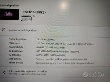 Notebook Dell 7420 14" Intel core i5 11° Ram 8Gb (non espandibile) Tastiera retroilluminata SSD 240Gb Alimentatore Originale