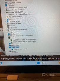 Con sistema operativo Windows 11 Home con licenza NON ATTIVA. Ssd da Gb 128 e Gb 4 di RAM processore Intel(R) Celeron(R) CPU N3350 @ 1.10GHz scheda video Intel(R) HD Graphics 500 . Batteria E buona. Completo di caricabatterie