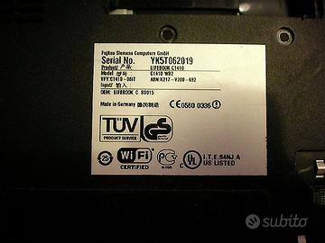 Vendo Pc Portatile Notebook FUJITSU SIEMENS LifeBook CSeries modello C1410 (c1410-wb2), colore nero e grigio con tastiera italiana bianca, da riparare/completare o per ricambi anche se funzionante.