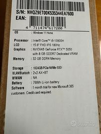 Acceso una volta, acquistato a fine novembre, perfetto nuovo e con garanzia due anni mediaworld, intel i9, 32 gb ram, ssd nvme 1000 gb, geforce rtx 5050 8 gb, windows 11.
