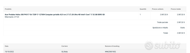 Descrizione: Vendo Acer Predator Helios 300 PH317-56-72SP, un potentissimo notebook gaming da 17,3” in stato impeccabile. Ideale per gaming, editing video e lavoro intensivo, con componenti top di gamma e design elegante in colore nero. Completo di scatola originale e accessori.