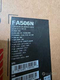 Vendo notebook gaming ASUS FA506N con Garanzia Casco 2 Anni.
