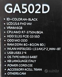 Vendo ASUS ROG Zephyrus GU502DU, notebook adatto sia per gaming che per lavoro o studio, leggero e compatto.