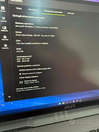 Come da titolo vendo Notebook MSI GP68 Vector. Il Pc monta attualmente: CPU: 13thGen Intel i9-13950HX perfetta per i lavori più esigenti e gaming RAM: 32Gb Kit 5600Mhz STORAGE: 1x SSD nvme 1Tb WD GPU: Nvidia RTX 4090m per giocare a qualsiasi titolo esistente in 1440p/4K TASTIERA: Steelseries full RGB controllabile tramite Software proprietario SCHERMO: 144hz FHD+ IPS 1900x1200 Venduto con alimentatore originale. Il portatile non presenta danni alla scocca, sono presenti comunque piccoli difetti causati da normale utilizzo. Paste termiche e pad termici cambiati con regolarità. Non scambio e non permuto. Venduto solamente tramite scambio a mano. Per info o foto aggiuntive chiedere in privato.