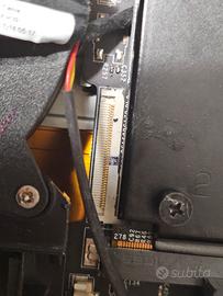 Durante il rimontaggio però qualcosa andò storto. Il gangetto che tiene collegato il cavo del monitor aa scheda madre si è rotto (ho fatto la foto del pezzo interessato). Mi sono ritrovato dunque un pc con tastiera funzionante ma... Schermo totalmente nero. Il notebook ho avuto modo di collegarlo ad un monitor esterno per verificarne il funzionamento.