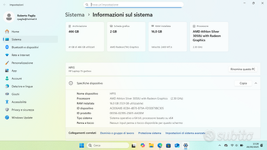 Vendo PC notebook HP con monitor da 15 pollici, memoria RAM da 16 GB e hard disk SSD da 500 GB con 6600 MB/s di quarta generazione, scheda grafica dedicata da 2 GB. Sistema operativo installato Windows Home 11 64 bit. Il computer è perfetto, ha solo due anni di vita, come da immagini includo la scatola originale, il libretto e il carica batteria.