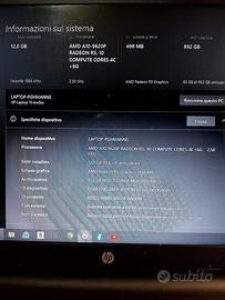 VENDO NOTEBOOK HP 15 POLLICI – SO WINDOWS 10- 12 GB RAM – PROCESSORE AMD A10- 9620P- RADEON R5,10 COMPUTE CORSE 4C + 6G –SCHEDA GRAFICA 498 MB – ARCHIVIAZIONE 932 GB € 110 trattabili