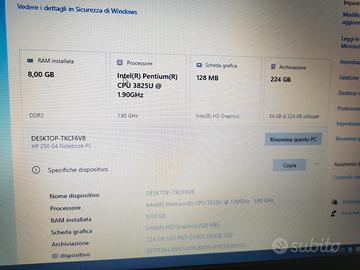 salve a tutti vendo notebook hp 250 g4 in condizioni eccellenti così configurato: