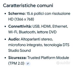 Computer portatile in ottime condizioni. Prodotto formattato, pulito, con Sistema operativo Windows 10.