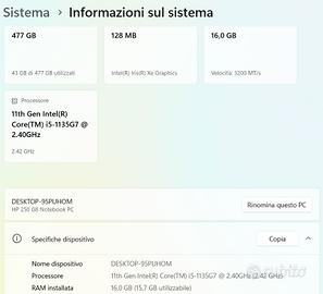 Vendo portatile in ottime condizioni generali e perfettamente funzionante. Processore intel i5-1135G7. Memoria da 1 banco DDR4 16GB 3200. HD SSD NVME da 512GB. Windows 11 PRO. Schermo 15.6" Full hd. Porta USB -C e 2 porte USB 3.0, Porta RJ45, Uscita HDMI, jack cuffie con microfono. Caricatore originale, ottima durata della batteria sostituita nel 2025. Prezzo poco trattabile, non accetto poposte di scambio o offerte ridicole, grazie.