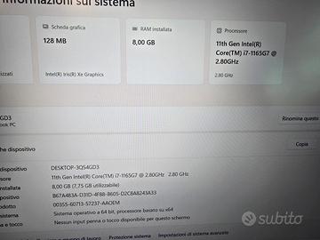 notebook HP 250 G8 Intel Core i7-1185G7 Ram 8 GB DDR4 SSD M2 512GB NVMe WIN 11 64BIT PRO BATTERIA AL 100%