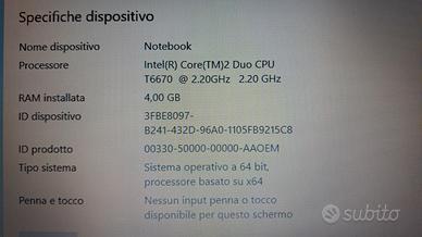 Completamente funzionante con SSD 250 Gb Schermo da 15,6" - masterizzatore dvd Windows 10 Pro Batteria esaurita