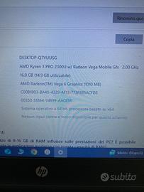 Per inutilizzo hp amd ryzen 3 2300U w radeon vega Gfx 2.00 Ghz Ram 16gb Hd m2 512gb + ssd 256 gb Siamo a Villaricca laboratorio informatica 3275753464