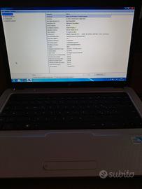 Vendo notebook hp G62, processore Intel Pentium dual core, hard disk 320 GB, RAM 4 GB, con lettore DVD, 3 porte USB, porta HDMI per collegare monitor esterno, e altre. Il notebook è tenuto bene ottimo per uso ufficio ,internet, studio, elaborazione con Word, excell ,Power point, PDF, foto, email, connessione Wi-Fi, bluetooth. La batteria dura poco però comunque utilizzabile collegato alla rete. La batteria è di tipo rimovibile e sostituibile con poca spesa. In dotazione l'alimentatore originale. Laptop, netbook, computer portatile, PC, ultrabook.