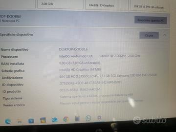 Hard disk HDD 500GB + SSD Samsung 250GB per un totale di 750GB di memoria di archiviazione.