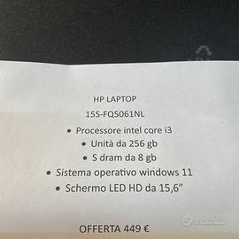 NOTEBOOK HP I3 256/8 WIN 11 15.6”