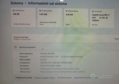 Computer Notebook portatile HP Envy 17 con Maxi display 17.3 pollici in ottime condizioni estetiche e perfettamente funzionante compresa la batteria nuova, il tutto appena formattato e ripristinato a nuovo, ottimo per internet, smart working, office , streaming video ecc.. il tutto con le seguenti caratteristiche: