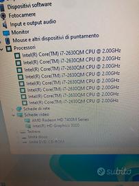 Hp Pavilion dv6 -6160sl con sistema operativo Windows 11 Pro con licenza digitale Microsoft attiva, HHD da Gb 500 e Gb 8 di ram, usb, cd dvd, hdmi, webcam integrata. Processore Intel(R) Core(TM) i7-2630QM CPU @ 2.00GHz con scheda video AMD Radeon HD 7400M Series Intel(R) HD Graphics 3000 . Batteria Quasi esaurita.... Dura poco . PER POSTAZIONE FISSA O CAMBIO BATTERIA. Completo di caricabatterie