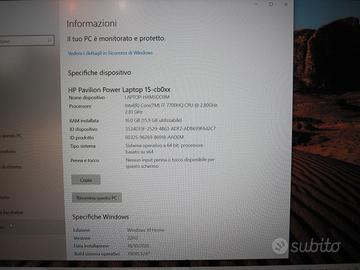 Vendo come da foto pc portatile HP Power Laptop, in perfette condizioni, sempre usato in casa, nero con particolari verdi, batteria funzionante, nessun graffio. Specifiche: - Schermo 15,6 pollici, antiriflesso con risoluzione 4k. ⁃ Processore i7 2,80 GHz (8 CPUs) ⁃ Tastiera retroilluminata, - 16 GB di RAM. ⁃ Scheda video dedicata Nvidia GeForce GTX 1050 4 GB VRAM. ⁃ Memoria HDD da1 TB e SSD da 120 GB. ⁃ Altoparlanti B&O.