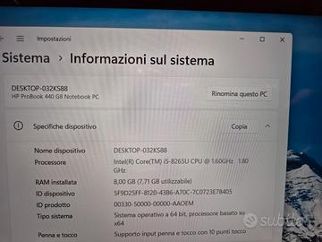 Vendo Notebook Hp Spectre con touch I5 8TH gen 8GB Ram 256GB ssd puoi gireare il Lcd 360 gradi con caricatore e penna originale HP