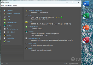Portatile HP 15-dy1005nl del 2021 perfettamente funzionate ed in condizioni estetiche buone (qualche sciocchezza estetica) Processore Intel I5 di decima generazione, 12gb di ram e 256gb di SSD NVME Schermo da 15.6'' pollici FullHD IPS Batteria Originale HP ancora con il 96% di salute e alimentatore originale HP incluso Windows 11 25H2 appena installato, pronto all'uso, aggiornato senza nessun utente registrato e nessuna password richiesta all'avvio.
