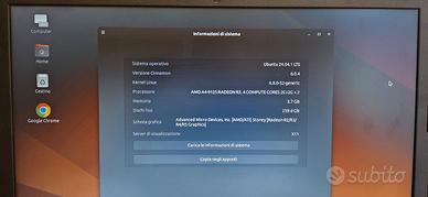 Notebook Lenovo 15 pollici con processore AMD 4 Radeon R3, 4 Gb memoria RAM e 256 Gb hard disk con sistema operativo Ubuntu. Porta USB, HDMI, RJ45 in buone condizioni generali, comprensivo di cavo di alimentazione.