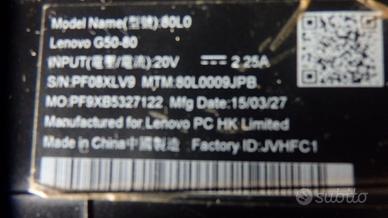Notebook Lenovo G50-80, Model Name 80LO non funzionante, non si accende.