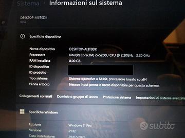 NoteBook LENOVO I5-5200U, IdeaPad 100-15IBD, batteria da sostituire. Pen drive bluetooth e caricabatteria originale inclusi. Funziona molto bene, molto veloce. SSD 128 GB nuovo. Windows 11 PRO. Disponibile per visione e prova, zona Conce. Eventualmente invio celere e sicuro.