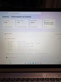 Processore Ryzen 3 serie 7000 Ram 8GB SSD 256GB Capacita batteria 98,7% Tastiera con layout spagnolo Perfettamente funzionante senza alcun difetto, ritiro a domicilio o possibilita di sperizione