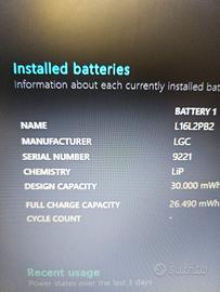 Notebook Lenovo IdeaPad 320 15,6" RADEON 530 Intel i5-8250u 1,6Ghz 8/240Gb SSD#1 Notebook Lenovo IdeaPad 320 (81BT-15Ikb ) Schermo 15,6" Processore Intel i5-8250u 1,6 Ghz Memoria 8Gb Memorizzazione 240Gb ssd (Kingston SA400S37240G) SSD Grafica integrata Intel UHD 620+ AMD RADEON 530 OTTICA dvdrw Sistema operativo Windows 11 Pro batteria PRESENTE battery 1 design: 24000 full charge 20480 battery 2 design: 23940 full charge 15120 usb, mini display port, vga, rete, Wi-Fi, Bluetooth, Cam INCLUSO ALIMENTATORE originale