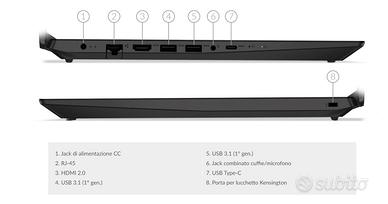 2 x USB-A 3.1 Gen 1, 1 x USB-C 3.1 Gen 1, 1 x HDMI 2.0, 1 x RJ45 LAN, 1 x mini-jack ingresso microfono/uscita cuffie.